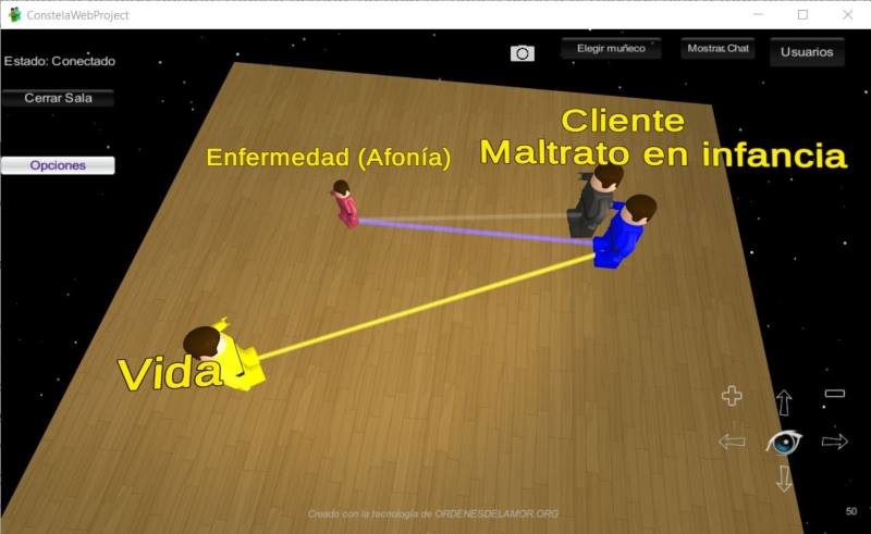 - Le pido a la consultante que configure la imagen de su problema. Y nos muestra una imagen de maltrato en su infancia por parte de su padre. (Expresó que de allí puede venir) y su vinculación con la afonía.